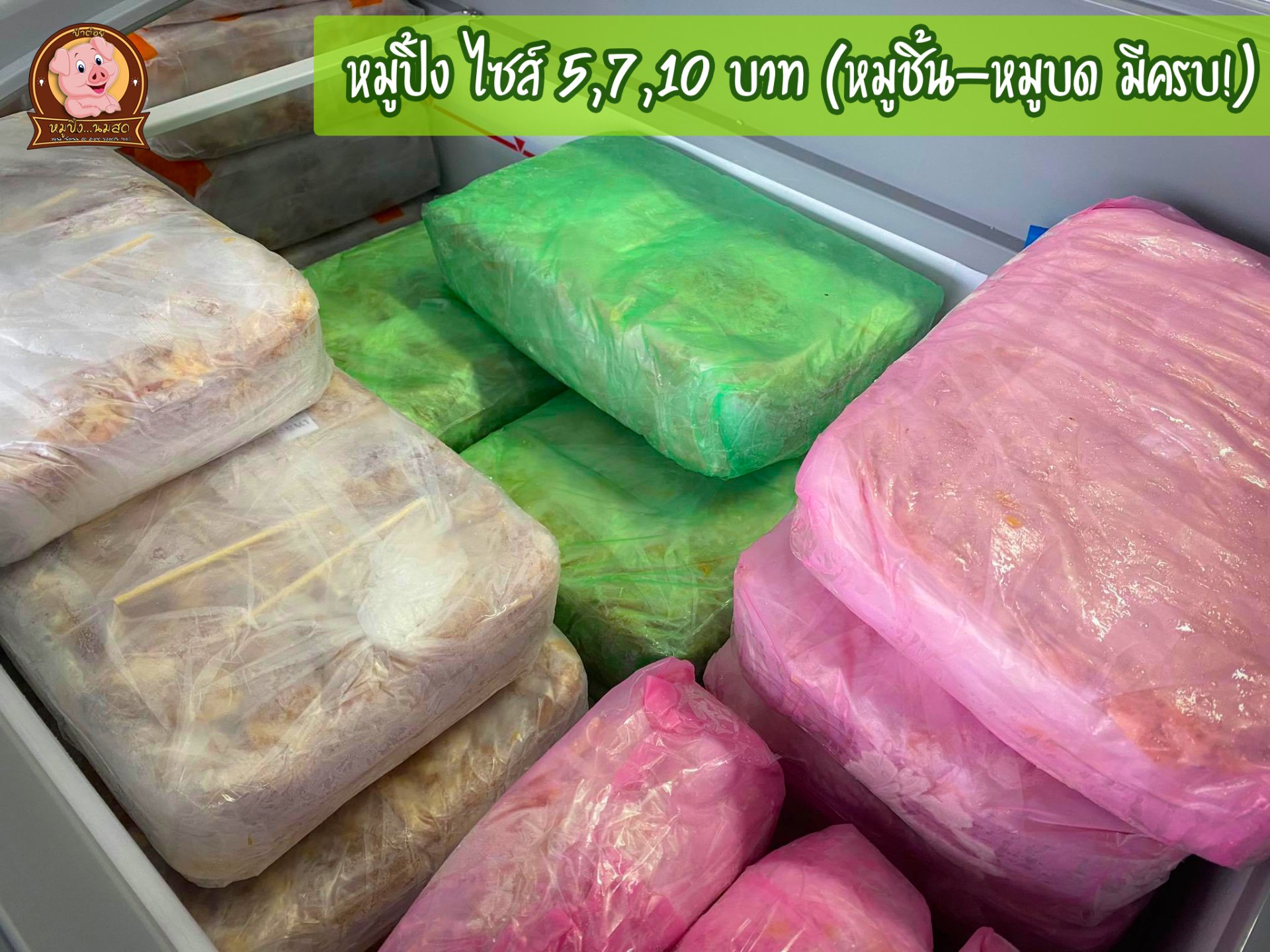 หมูปิ้งนมสด หมูปิ้งโบราณ ไก่ย่างแดงโบราณ เนื้อย่างโคขุน ไส้กรอกอีสาน แหนมหมู แหนมปลากราย ไส้อั่วสมุนไพร ฯลฯ ราคาส่งทุกรายการ